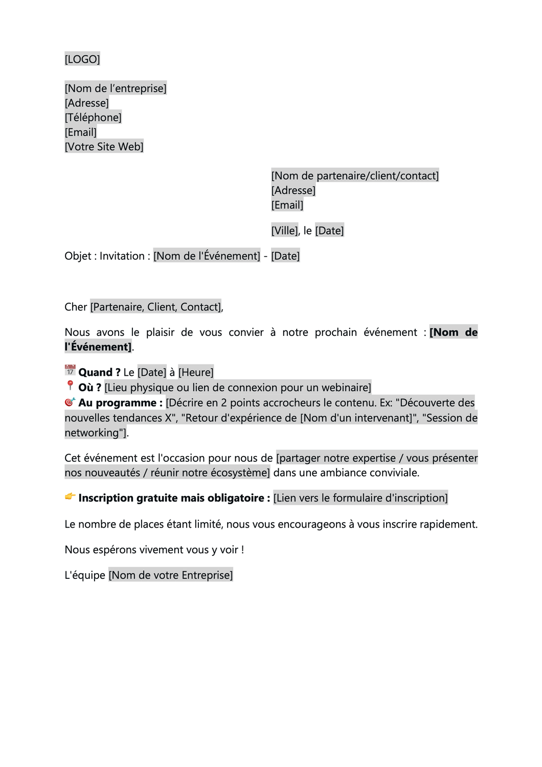 Bien que conçus comme des courriers types, tous nos modèles de courrier sont entièrement adaptables pour vos emails professionnels - il vous suffit de reprendre le corps du texte dans votre messagerie.